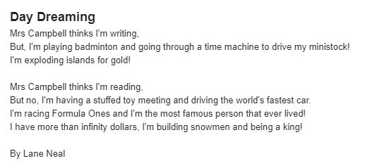 Blake Upperton for settling into room 6 and being a fantastic reader