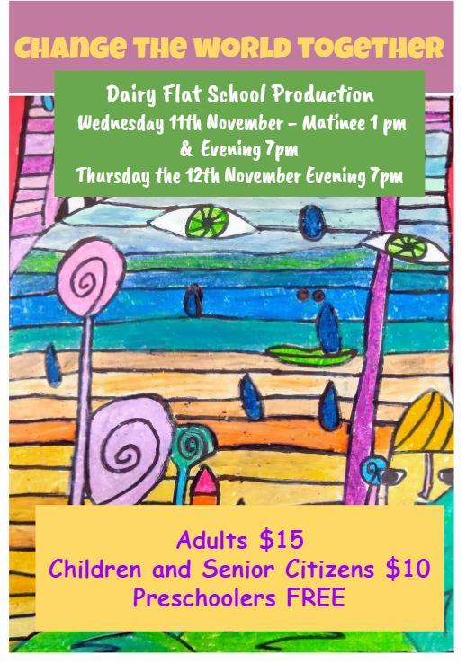 Our production is in full swing. The children are performing in 3 shows. Wednesday 11th November at 1pm Wednesday 11th November at 7pm Thursday 12th November at 7pm Children will need to come to the performance with foundation makeup on. Children need to arrive at school no later than 6.30pm. LZ1 to Rm 1, LZ2 to Rm 10 & 11, LZ3 to Rm 2 & 3, LZ4 to Rm 8 & 9. The main cast will need to be at school at 6.00pm at the latest. On the nights of the evening performances, students should have a book to read, a game and snacks and a drink of water (no lollies please). Children can be collected from their rooms after the performance. Show finishes at approximately 8:30pm. Tickets are for sale at the School Office. $15 adults, $10 child/senior citizen, preschoolers free.